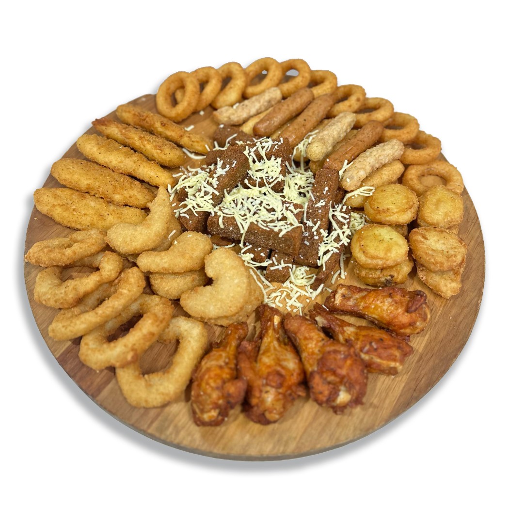 Луковые кольца, Кольца кальмара, Креветки в кляре, Стрипсы, Наггетсы, Крылышки острые, Сырные палочки, Колбаски свиные, Колбаски куриные, Гренки чесночные с сыром. Соус на выбор + 30 руб.