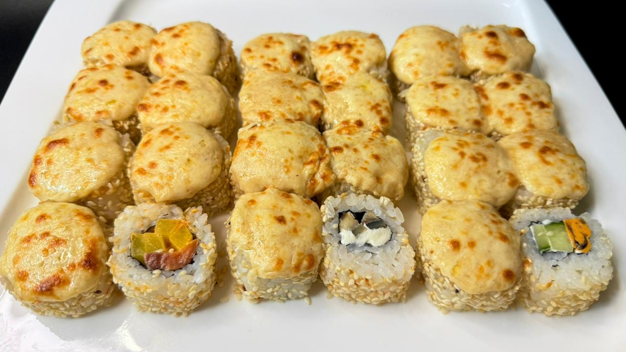 запеченный с лососем, запеченный с угрём, запеченный с мидиями, 24 шт